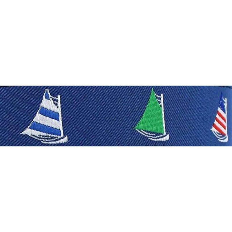 COUNTRY CLUB PREP Sailor's Delight Cat Boat Leather Tab Belt in Blue on Natural Canvas