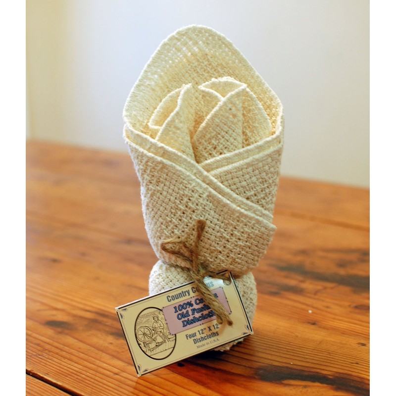 Country Cottons Old Fashion 100% Cotton Dishcloths - Set of 4 Mixed Colors - 4 Natural -11" x 11"