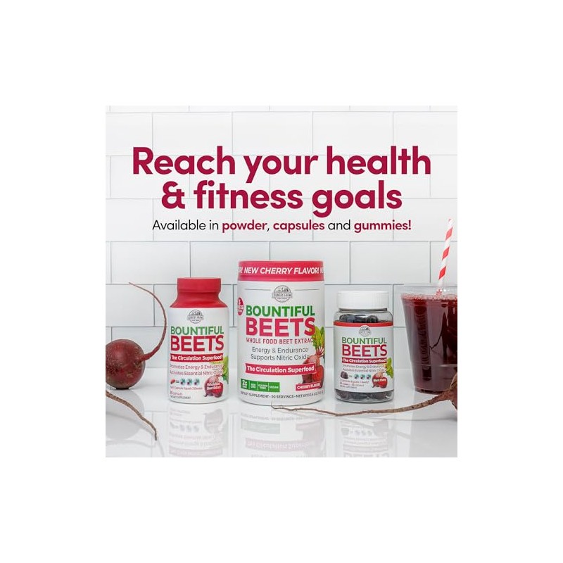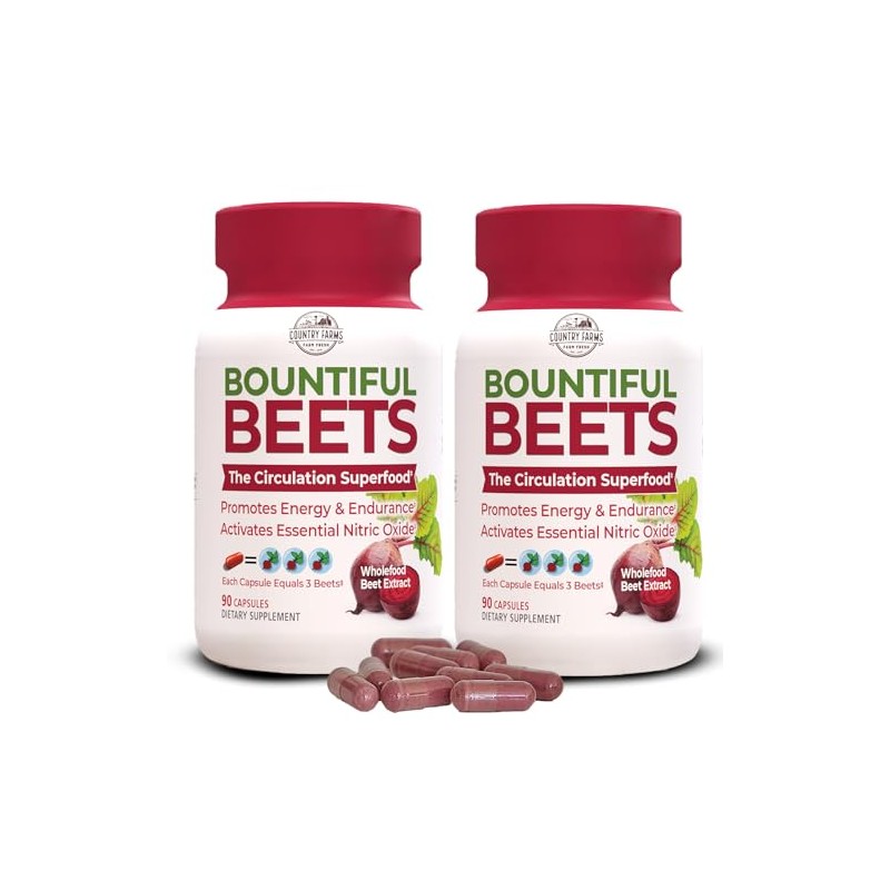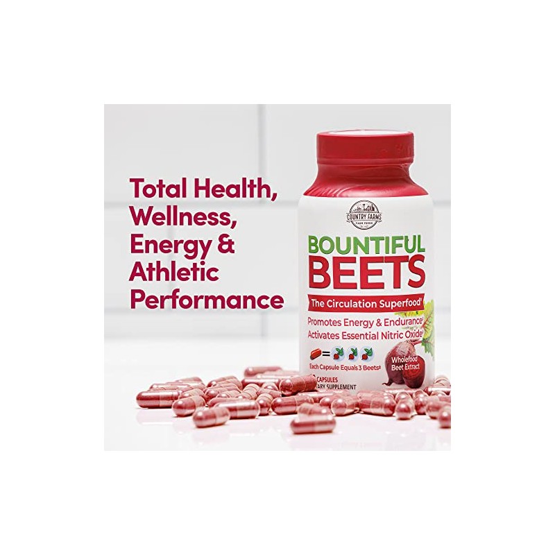 - NATURAL ENERGY. Country Farms Bountiful Beets Capsules support natural energy which may help boost athletic performance. Start implementing Bountiful Beets Capsules to your routine to help boost your workout, performance and overall health.