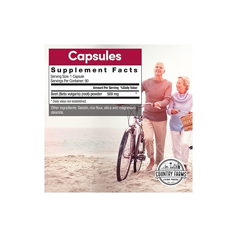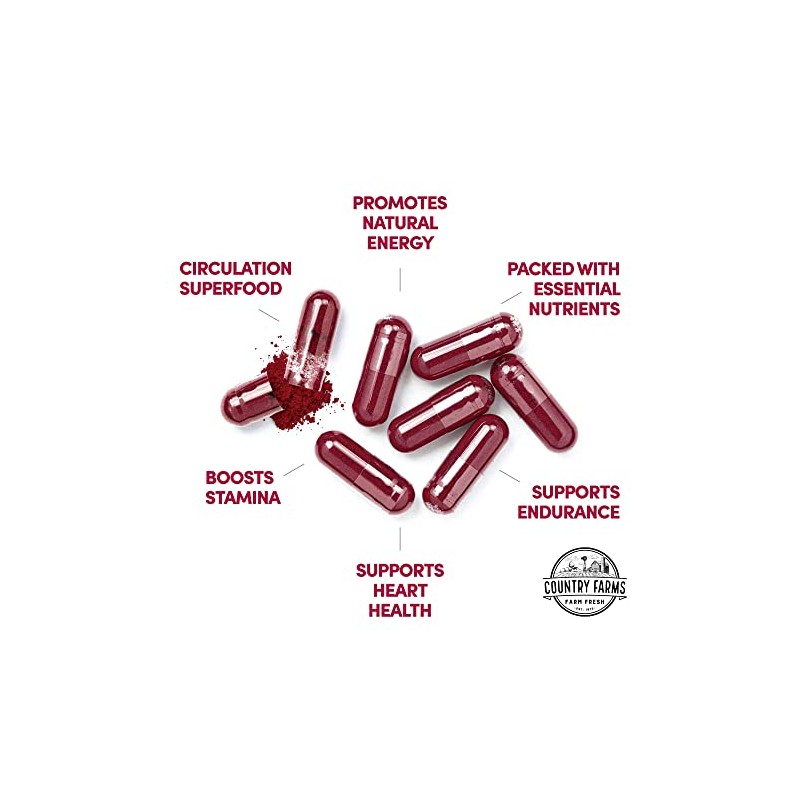 - CIRCULATION SUPERFOOD. Nitrates are converted to nitric oxide in your body, which supports circulatory health. When taken daily, Country Farms Bountiful Beets Capsules naturally help to promote healthy circulation and cardiovascular health, increase energy, and improve stamina.