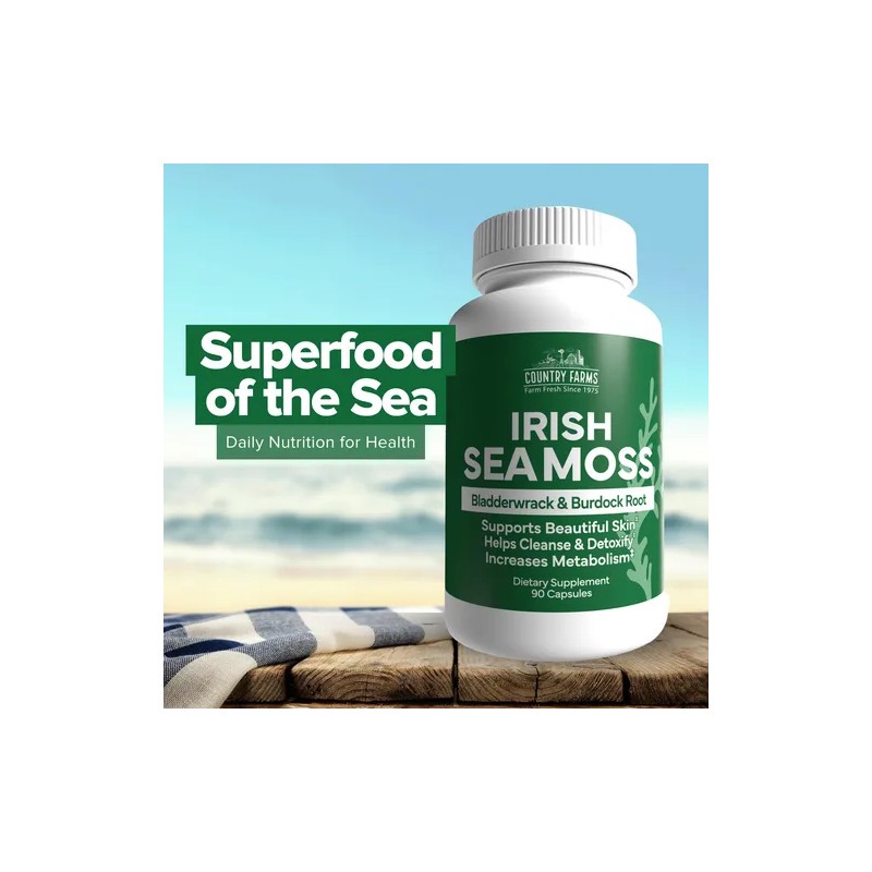 COUNTRY FARMS Irish Sea Moss Capsules, Supports Beautiful Skin, Immune System Support, Promotes a Healthy Gut, Glowing Skin & Natural Energy Levels, Burdock Root, Irish Moss & Bladderwrack, 90 Capsules, Maintains