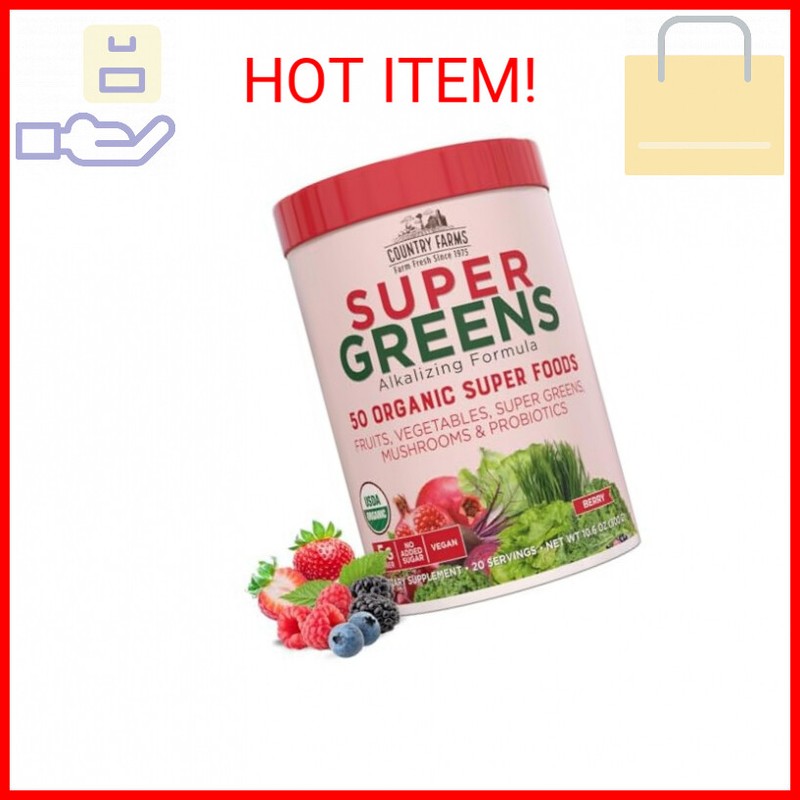 Country Farms Super Greens Berry Flavor, 50 Organic Super Foods, Packed with Fib