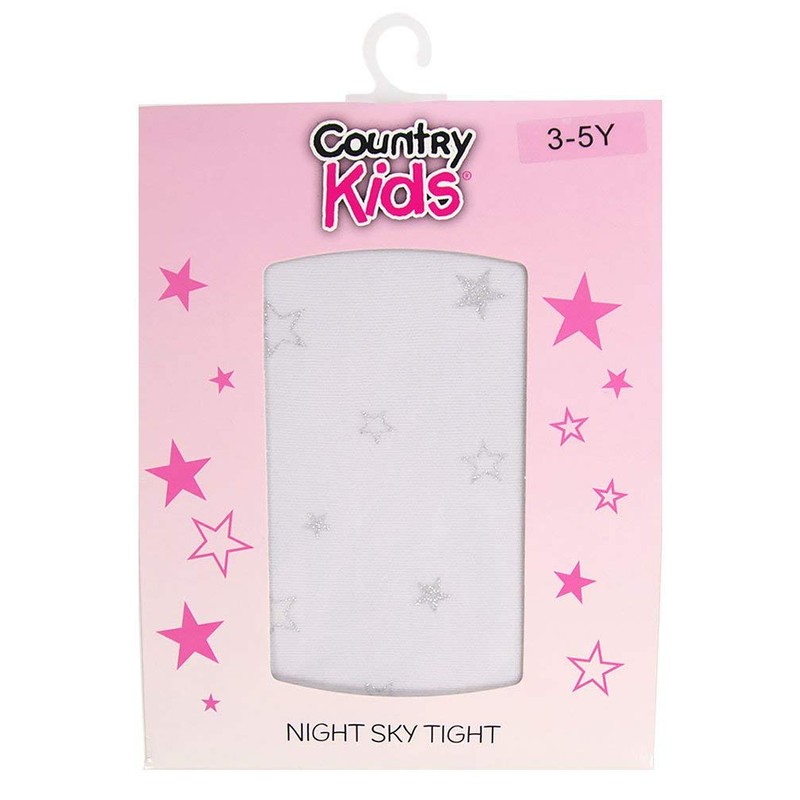 Country Kids Girl's Night Sky Tights, White (White/Silver), 6 (Size:6-8 Years)