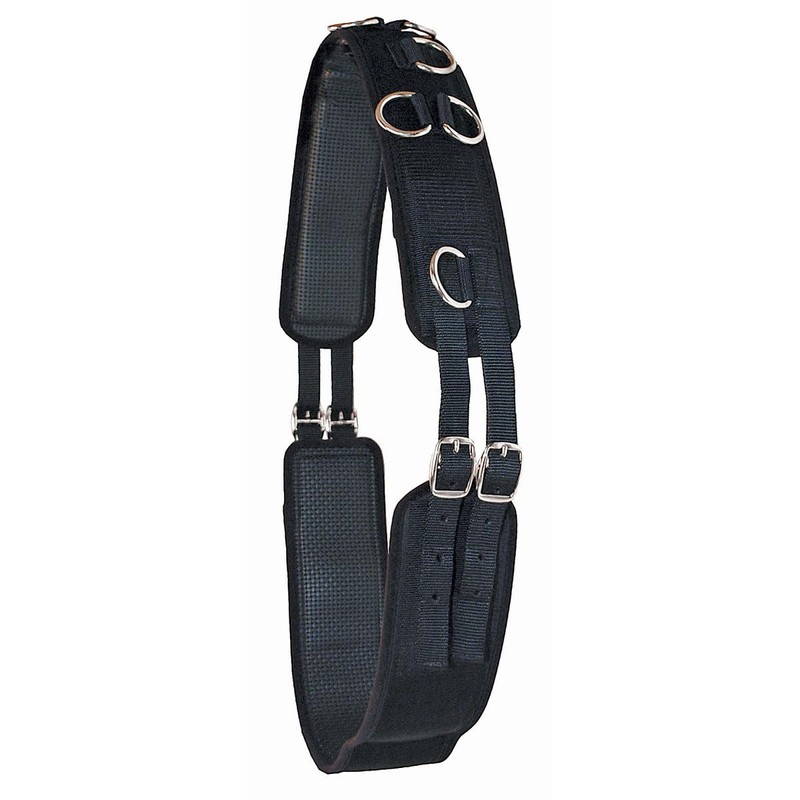 - 10 Metal rings across top for training attachments Black neoprene training surcingle