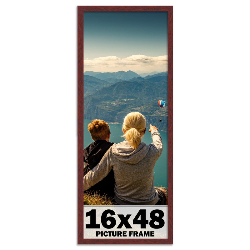 CountryArtHouse 16x48 Frame Brown Mahogany Picture Frame - Solid Wood Frame Kit Includes UV Acrylic Plexiglass, Acid Free Foam Backing Board and Hanging Hardware