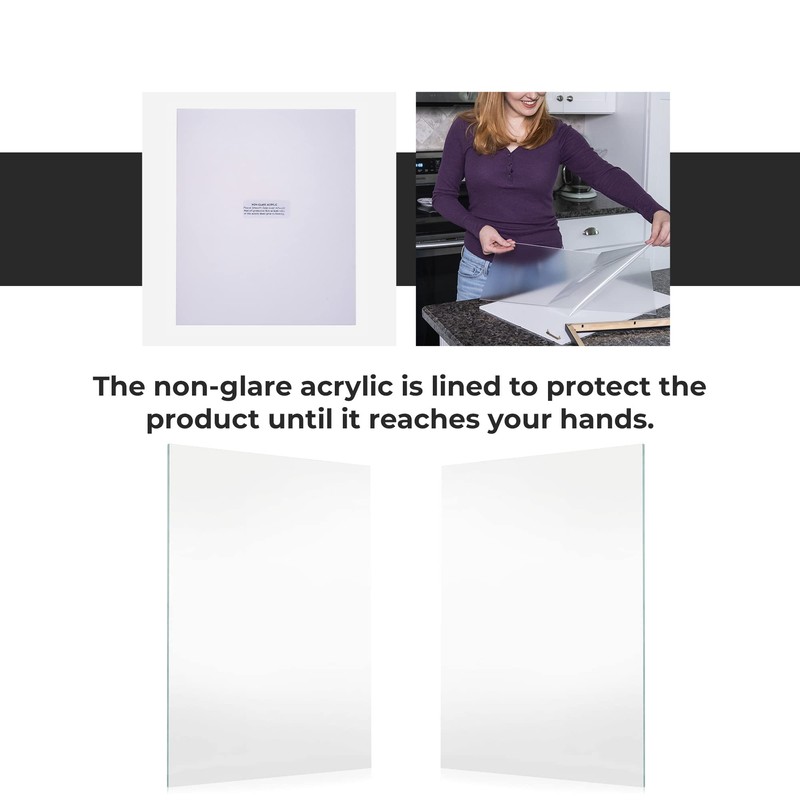 - INCLUDES: 16x24 Non-Glare Frame-Grade Acrylic glass replacement. Additional sizes available to fit your standard and non-standard picture frames.