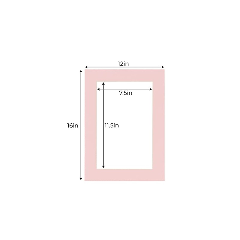 CountryArtHouse Soft Pink Acid Free 12x16 Picture Frame Mats with White Core Bevel Cut for 8x12 Pictures - Fits 12x16 Frame - One Mat
