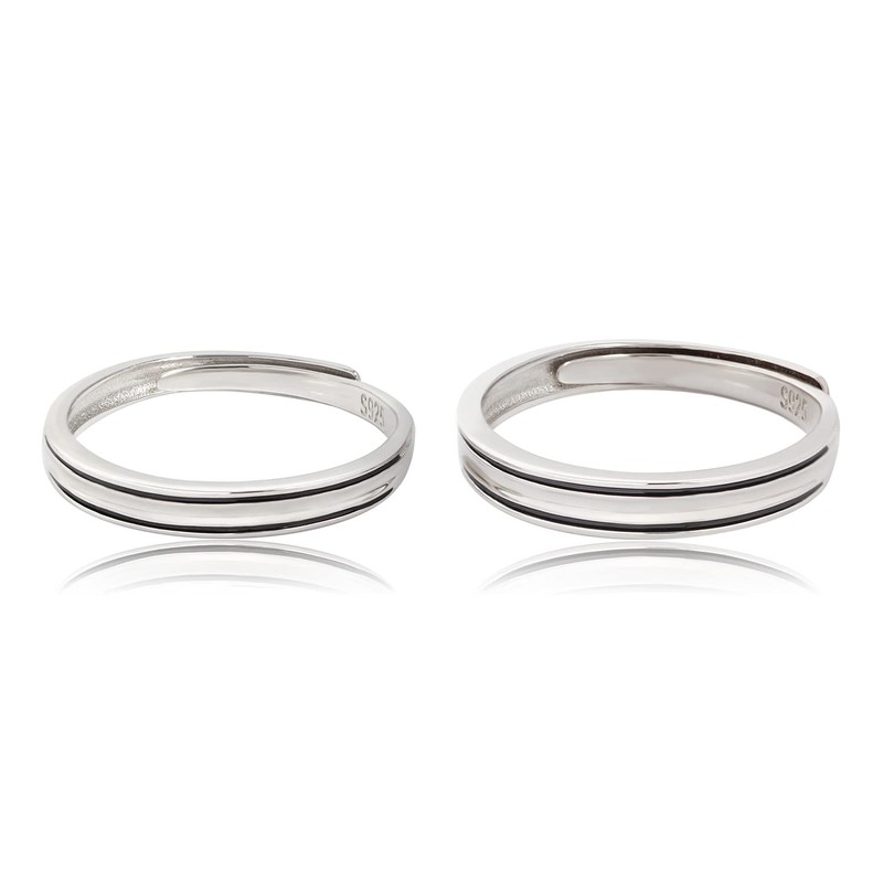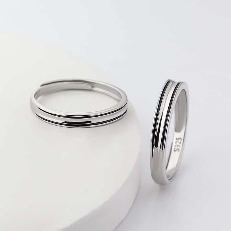 Couple Bands Sterling Silver Ring for Men and Women Handmade Dainty Simple Matching Ring Wedding Band Ring Size Adjustable (3.0mm Width)