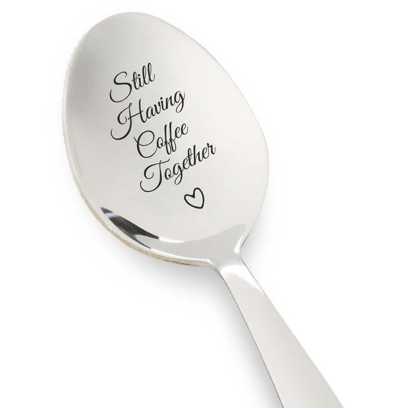 - Made with high-quality stainless steel spoon engraved as "Still Having Coffee Together" the impression will remain forever. Even after billion washes.
