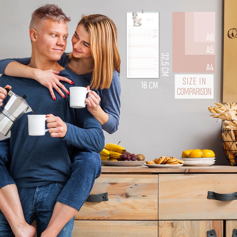 - ❤️ COUPLE CALENDAR WITH 3 COLUMNS - Beautiful and practical wall calendar with columns for 2 people who love each other and a third column for joint activities. Organise your daily life and plan beautiful things together! The colour-contrasting weeks as well as calendar weeks and all public holidays help. Dimensions: 16 x 32,5 cm
