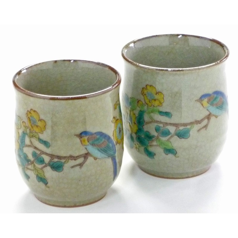 九谷焼 [Couple Tea Bowls] 金糸 Plum and birds "Back Picture"