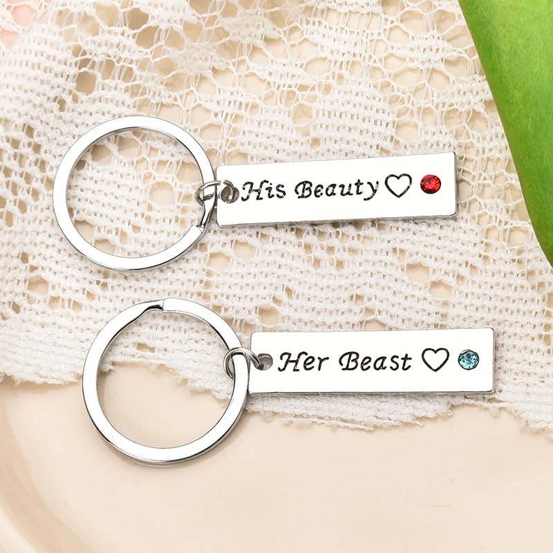- Couple Matching Keychains Gifts for Wife Husband Fiance Fiancee: The long distance relationship keychains set for him and her is best long distance relationship gifts for wife husband, engraved with " his beauty her beast " , let her/him know your deep love, surprise you love through the funny keychain, wife huaband anniversary gifts for women men, fiance fiancee wedding engagement gift, happy valentines day gifts for boyfriend girlfriend, long distance relationship gifts for women men couples