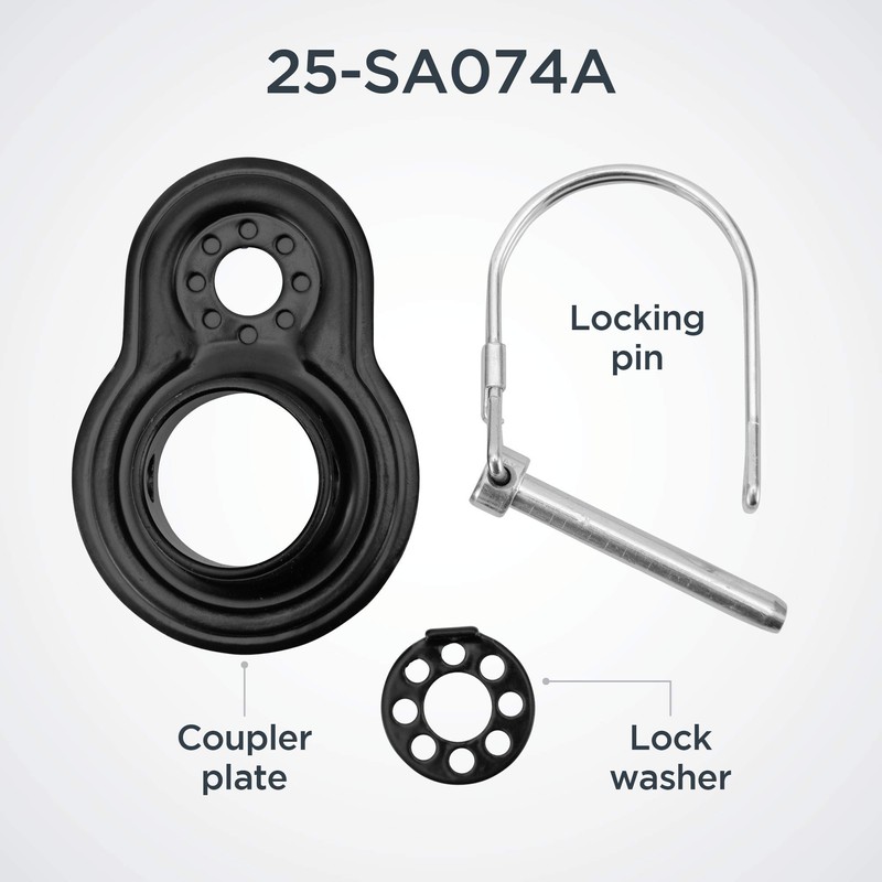 - Comes with lock washer, coupler plate, and locking pin