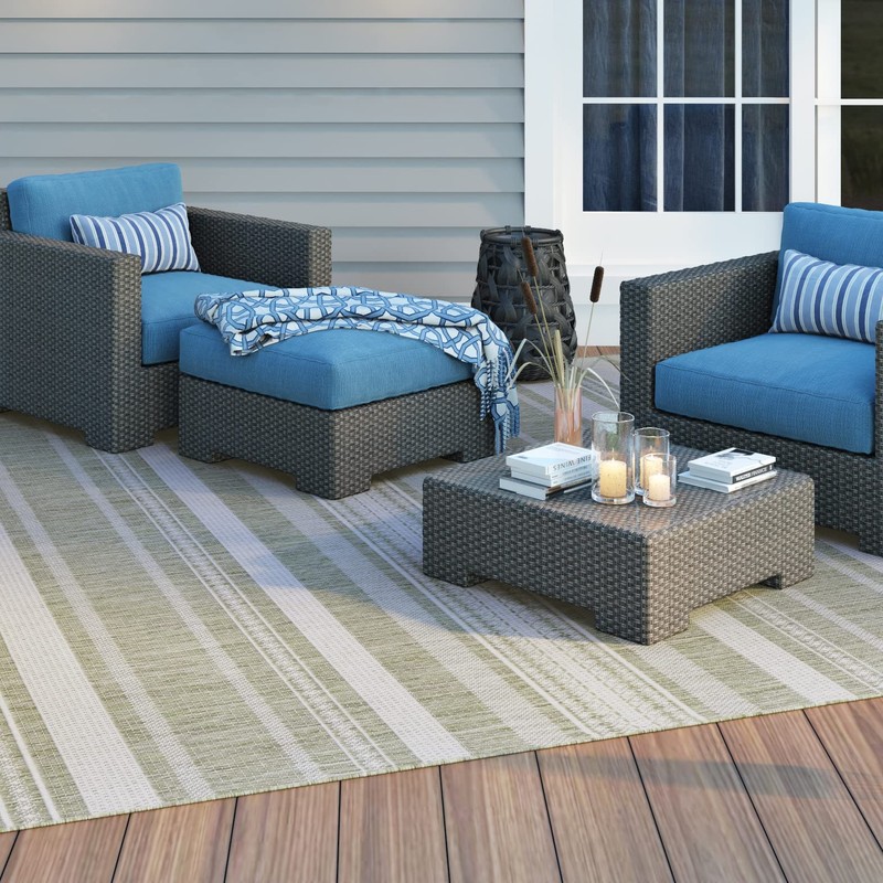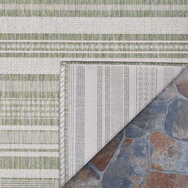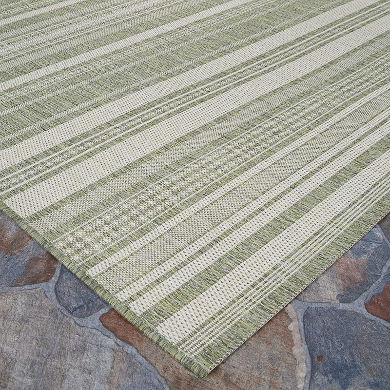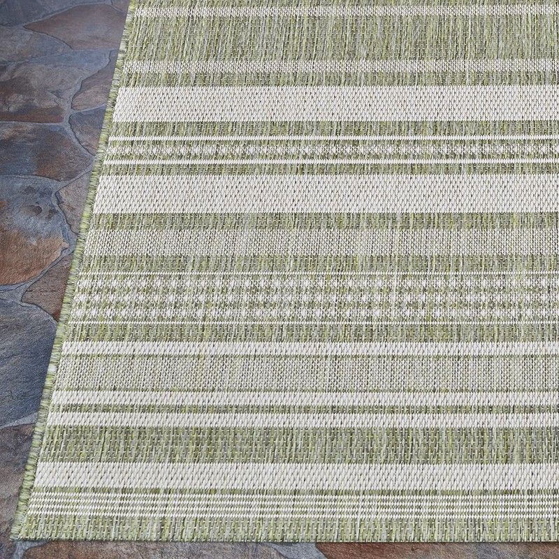 Couristan Recife Indoor/Outdoor Area Rug for Patios, Decks, Kitchens, and Laundry Rooms, All-Weather, Pet-Friendly and Easy to Clean, Gazebo Stripe Pattern in Sage Leaf Green-Ivory, 7'6" x 10'9"
