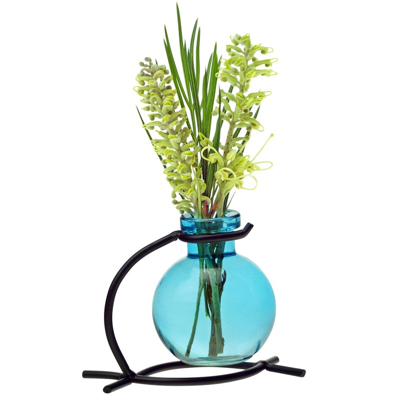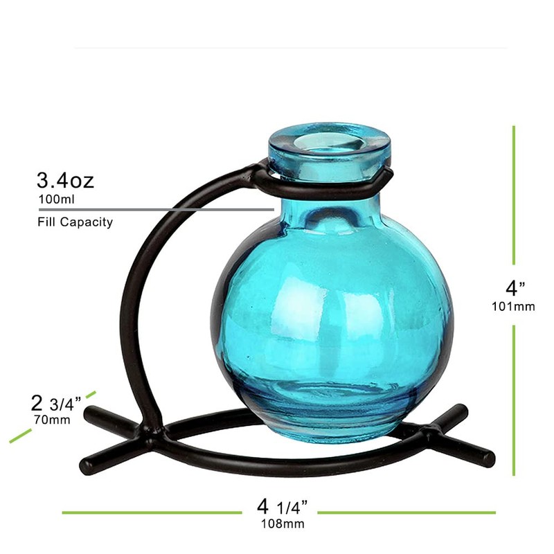 Couronne Company M501-200-09 Casablanca Recycled Glass Vase & Metal Stand, 4", Aqua, 1 Piece