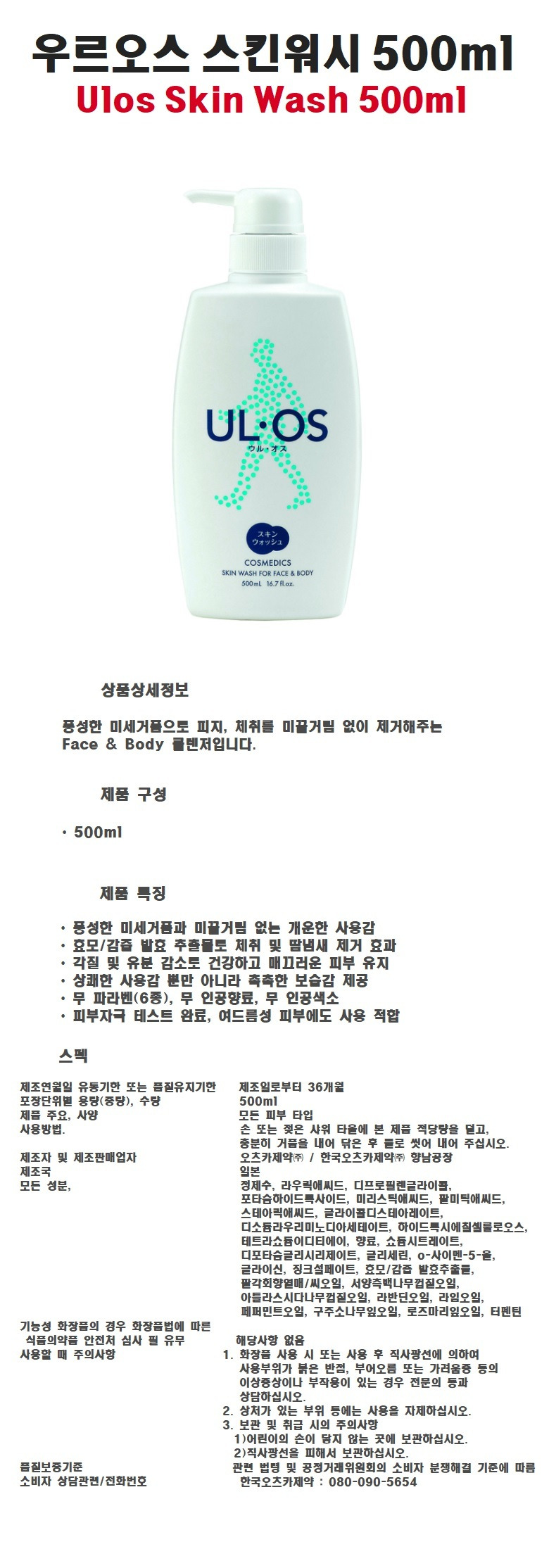 co우르오스 스킨워시 500ml 페이스 바디 샤워 클렌저