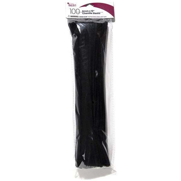 Cousin DIY Black Chenille Pipe Cleaners, 6mm x 12 inch, 100 Pack