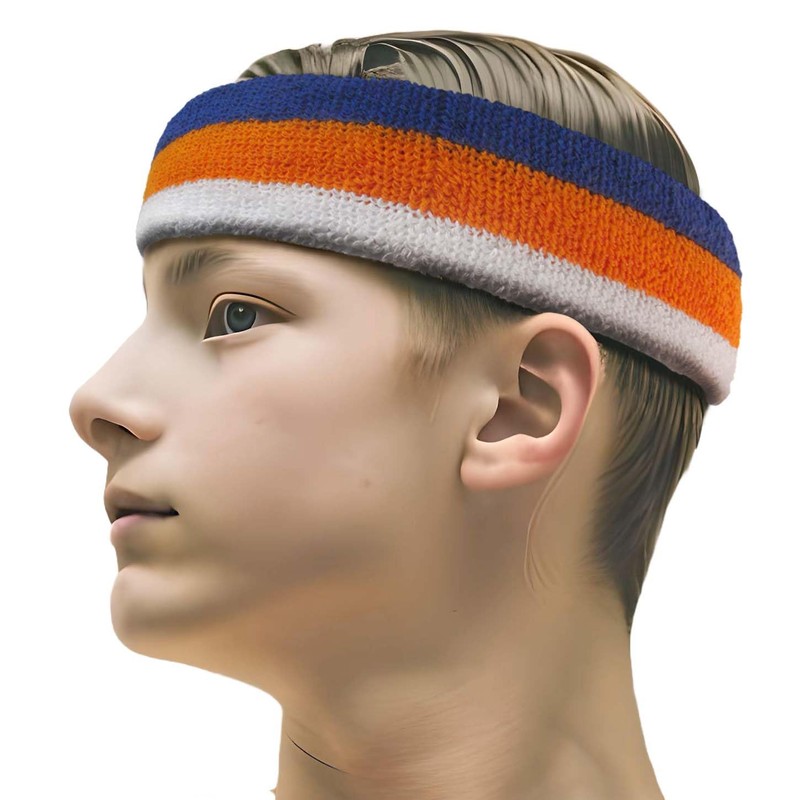 Couver Triple Color White Striped Sport Head Sweatband (1 Piece) - Blue/Light Orange/White
