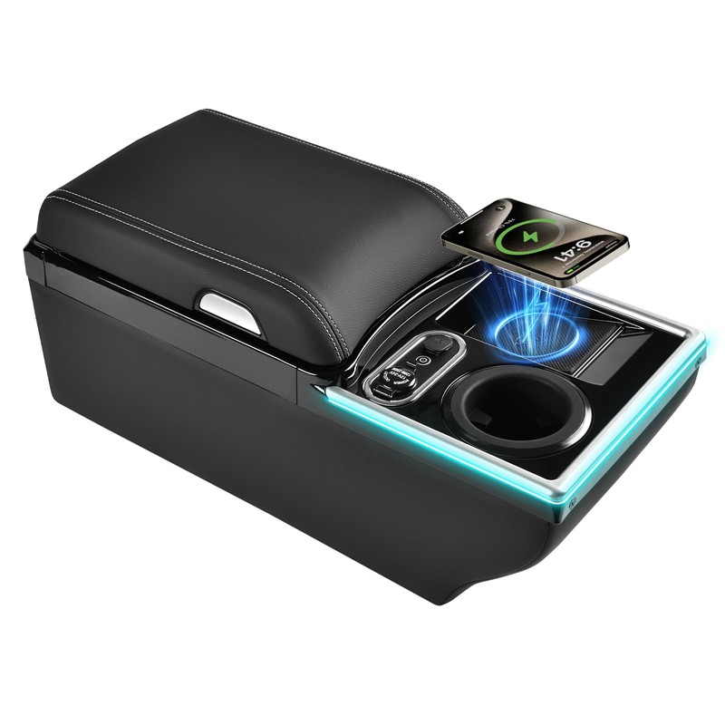 - 【Fast Charging for Phones】 This center console includes 1*USB port+1*Type C port+1* Embeded Wireless Charging, which is compatible with iPhones and Android devices, allowing for quick charging of mobile phones. Additionally, we've included a Cigarette Lighter socket. These ensure that you get rid of battery anxiety.