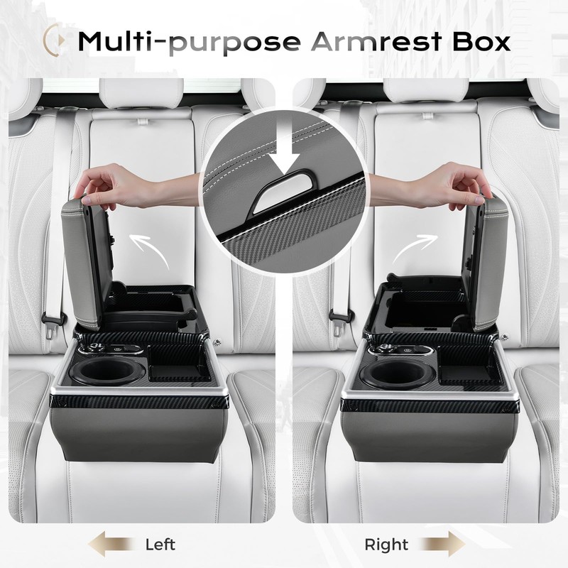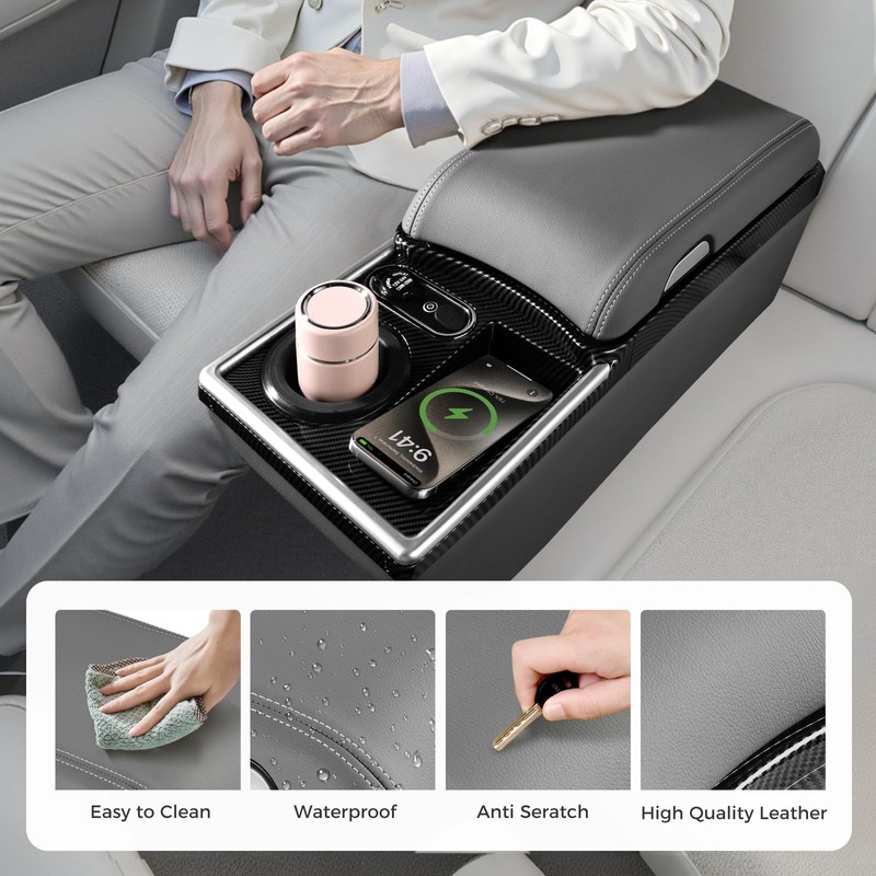 - 【Fast Charging for Phones】 This center console includes 1*USB port+1*Type C port+1* Embeded Wireless Charging, which is compatible with iPhones and Android devices, allowing for quick charging of mobile phones. Additionally, we've included a Cigarette Lighter socket. These ensure that you get rid of battery anxiety.