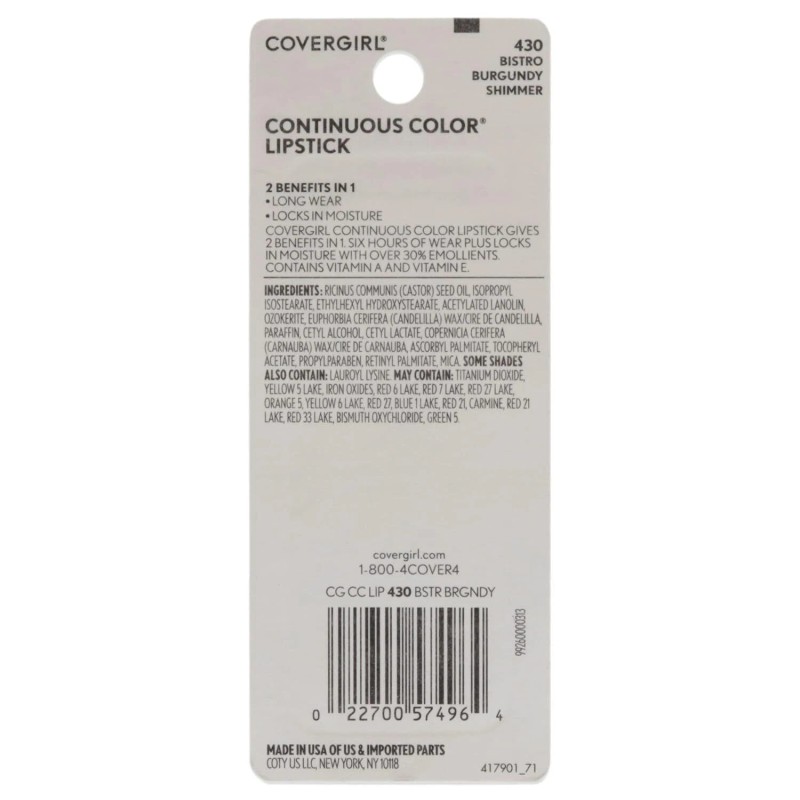 CoverGirl Continuous Color Lipstick - 430 Bistro Burgundy, 0.13 oz