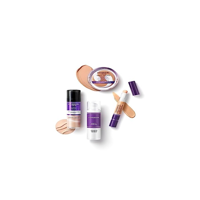 Product Description Give your skin that youthful glow with Covergirl & Olay Simply Ageless 3-in-1 Liquid Foundation. This anti-aging foundation plumps up skin to instantly reduce the appearance of wrinkles for a younger-looking complexion. Skin tone looks more even and other imperfections are blurred, while hyaluronic complex and vitamin C deliver firming hydration to keep your skin looking healthy and radiant. Pro-tip: Use with Covergirl Simply Ageless Anti-Aging Foundation Primer for maximum results. Brand Story By CoverGirl