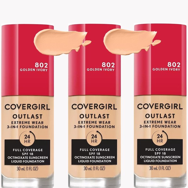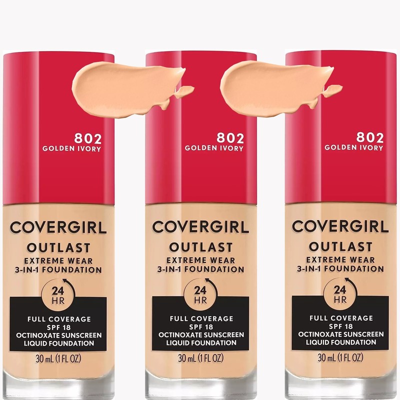 COVERGIRL Outlast Extreme Wear 3 In 1 Foundation 802 GOLDEN IVORY, 3PACK! (READ)