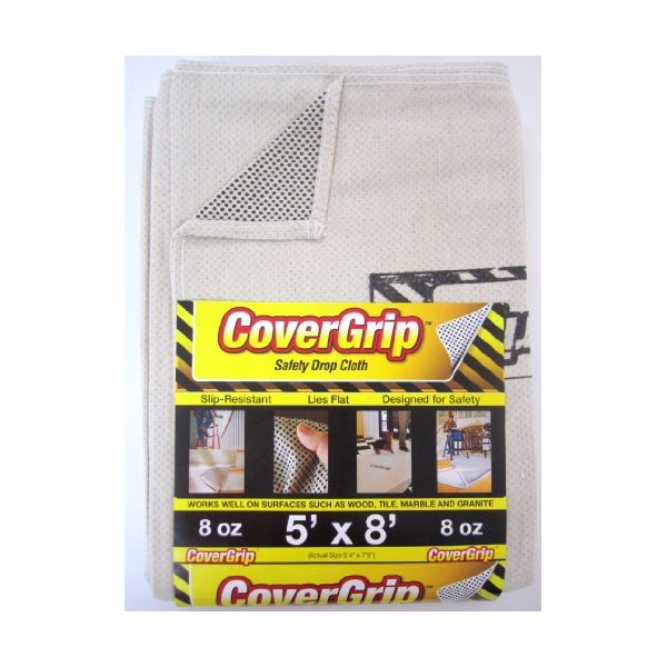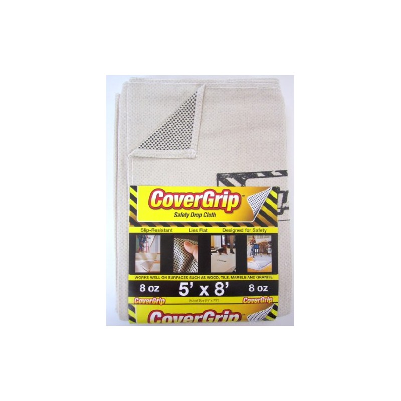 • SPECIFICS: (1) CoverGrip 8 oz Safety Drop Cloth. Size: 5’ x 8’. Made of high-quality cotton-poly canvas. Machine washable. Also available in a variety of sizes and weights.