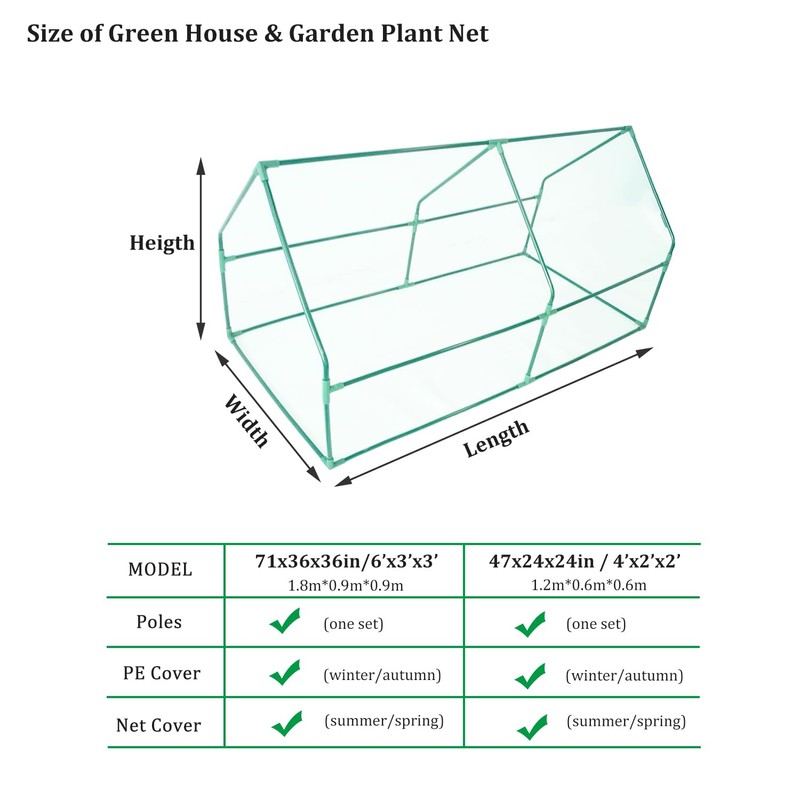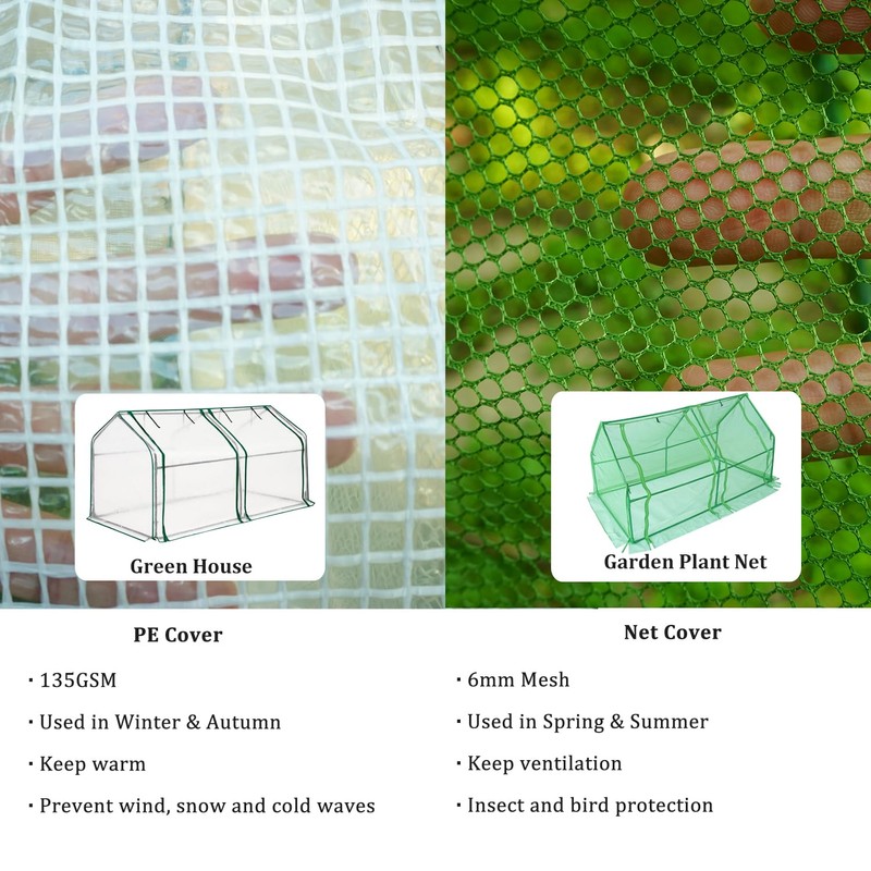Coverify Mini Greenhouse 71''x36''x36'' Multi-Purpose Portable Tunnel Greenhouse with Garden Netting Small Green House with Dual Zipper Doors for Vegetable Garden Outdoor Lawn, Backyard