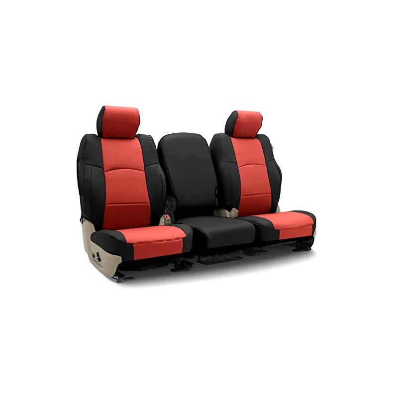 Coverking Custom Fit Seat Cover Designed for Select Hyundai Models: 1 Row, Premium Leatherette Fabric, Red with Black Sides