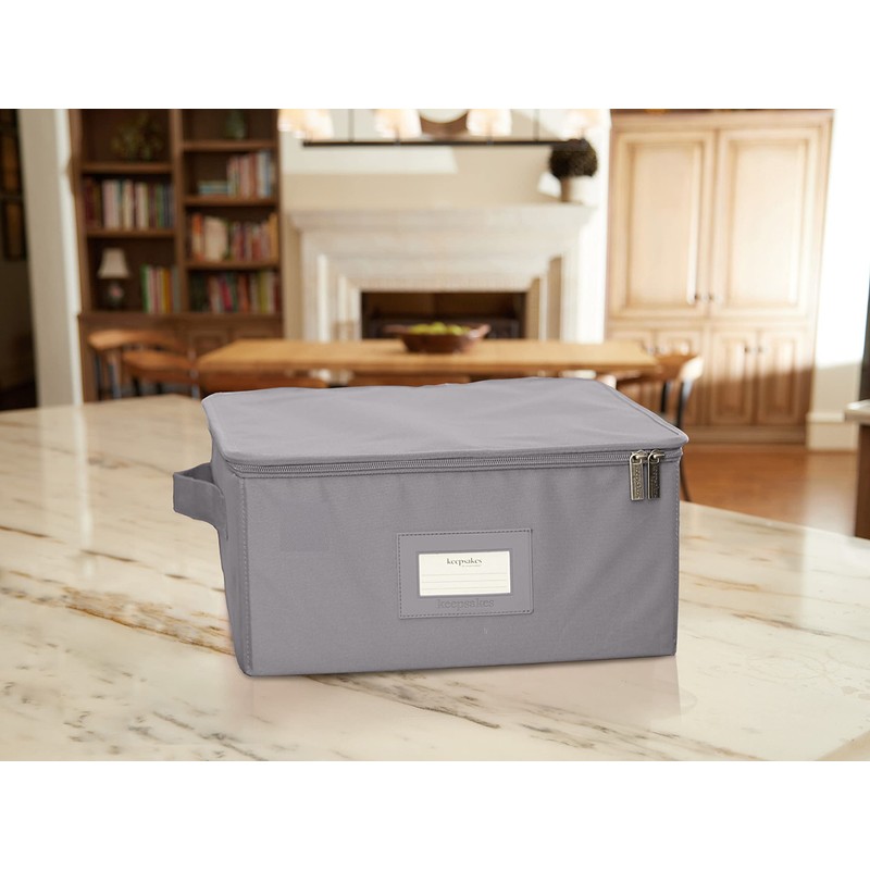 Covermates Keepsakes Dish Storage Box – Stackable, Reinforced Handles, China Storage, Graphite