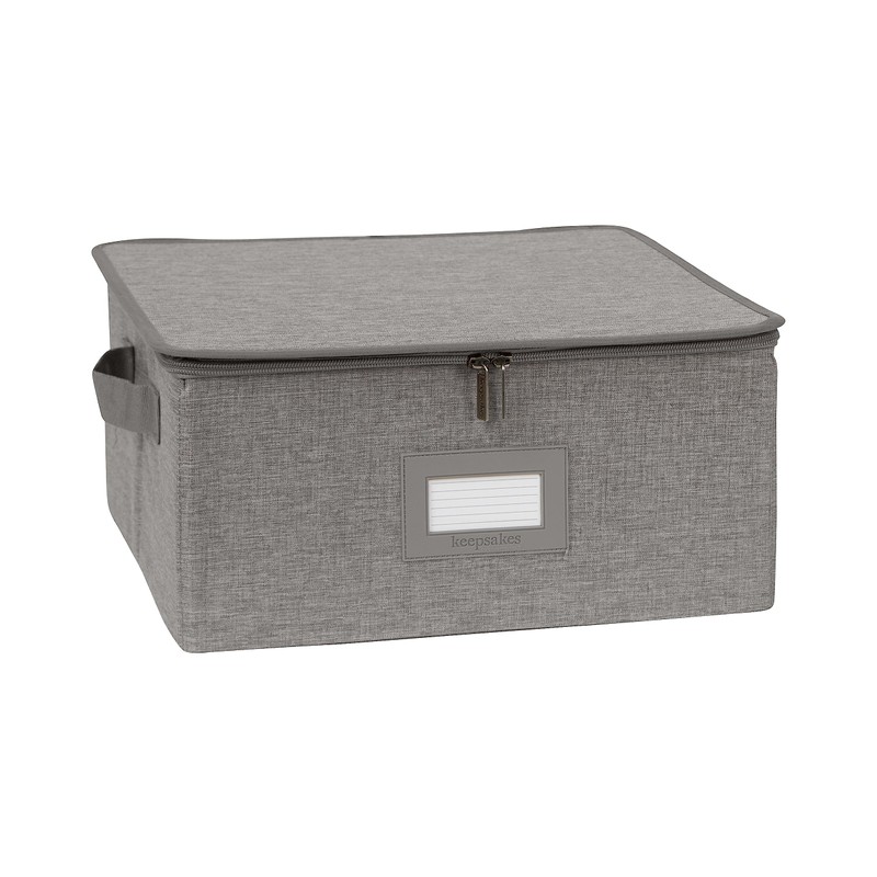 Covermates Keepsakes Dish Storage Box - Stackable, Reinforced Handles, China Storage, Grey Heather