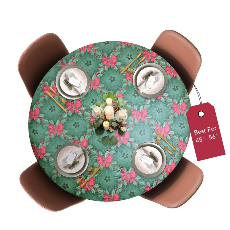 Covers For The Home Deluxe Elastic Edged Flannel Backed Vinyl Fitted Table Cover - Christmas Pattern - Large Round Oblong Oval - Fits Tables up to 45" - 56" Diameter