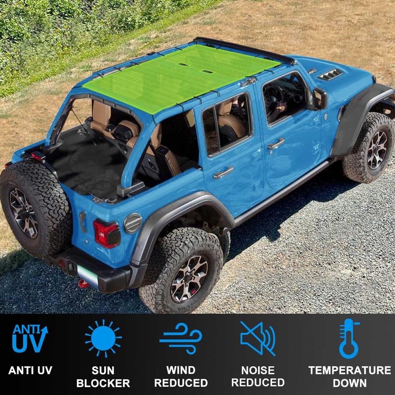 Coverspec JL Top Sun Shade Roof Compatible with Jeep Wrangler 2 or 4 Door 2018 to 2023 Sunshade Sunroof Cover Blocks UV Wind Noise Green Mesh for Full Length