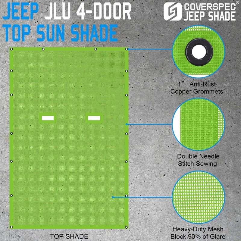 Coverspec JL Top Sun Shade Roof Compatible with Jeep Wrangler 2 or 4 Door 2018 to 2023 Sunshade Sunroof Cover Blocks UV Wind Noise Green Mesh for Full Length