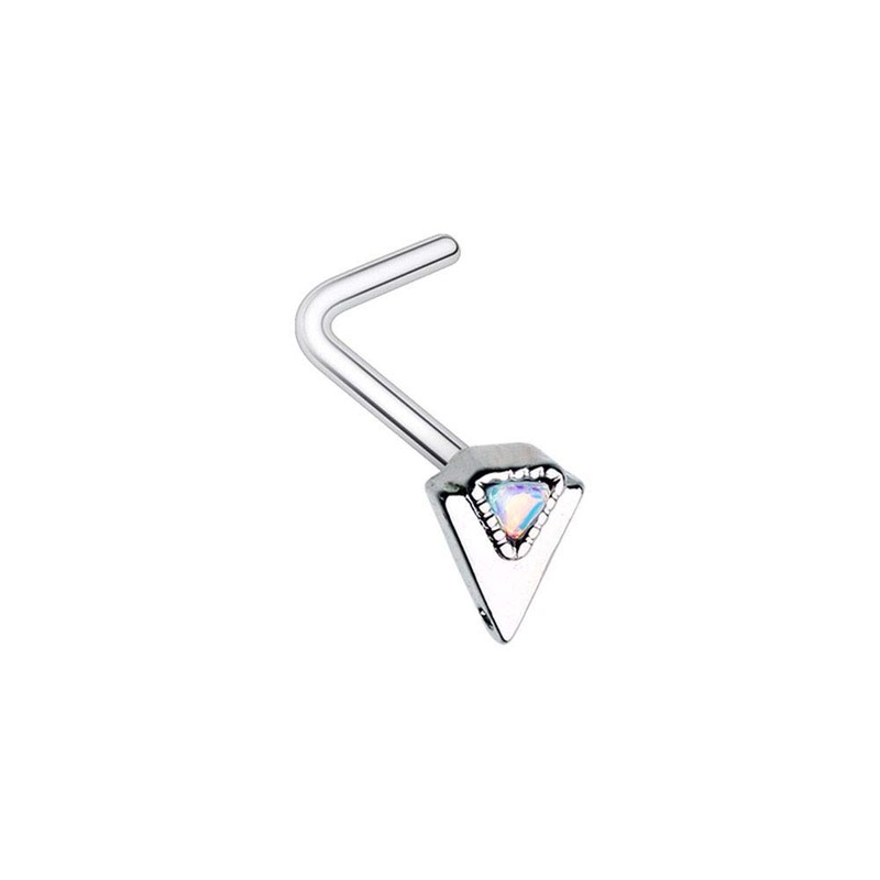 Covet Jewelry Geometric Triangle Moonstone L-Shape Nose Ring