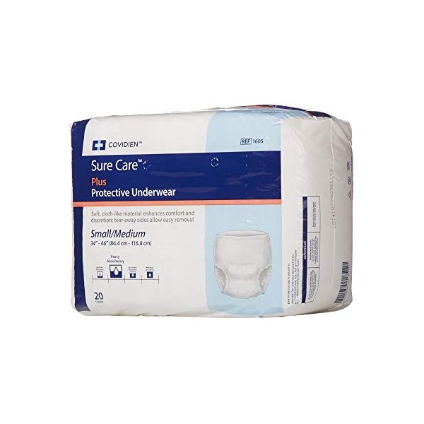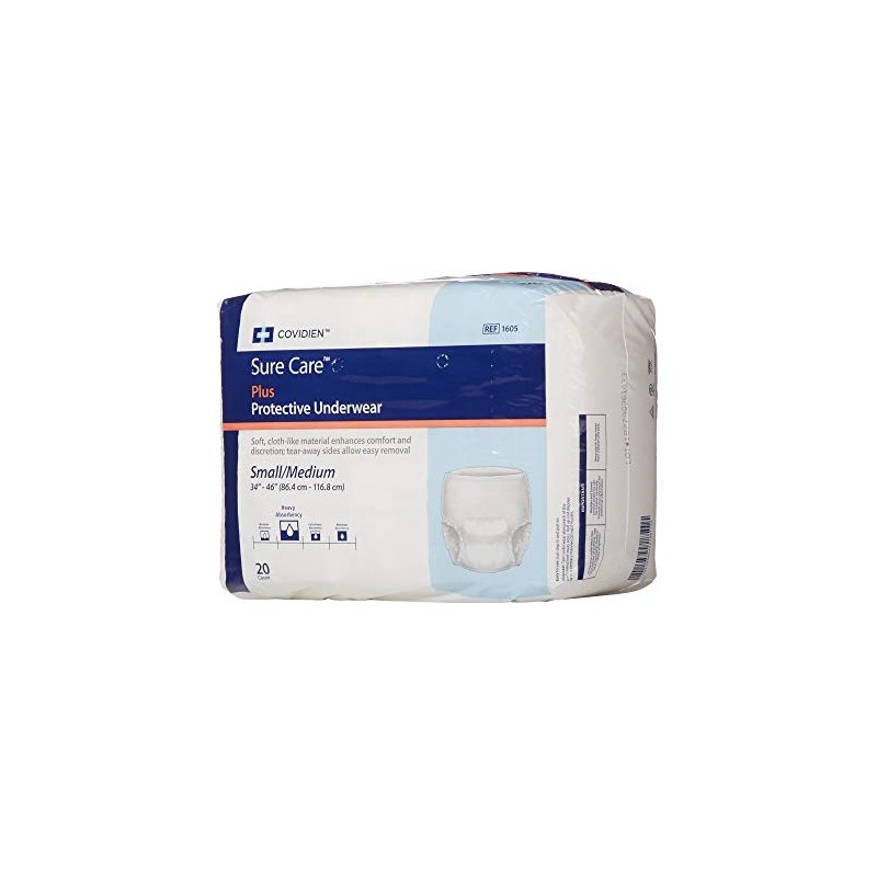 Covidien 1605 SureCare Protective Underwear, Heavy Absorbency, Medium, 34" - 46" Size (Pack of 20)