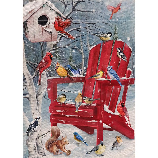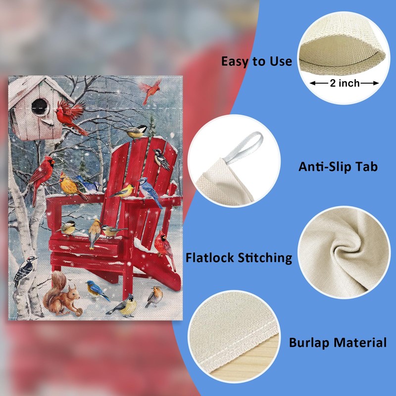 Covido Home Decorative Winter Red Chair Birds Garden Yard Flag Cardinal Blue Jay Bluebird Chickadee Squirrel Birdhouse Outside Decoration, Christmas Farmhouse Outdoor Small Decor Double Sided 12 x 18