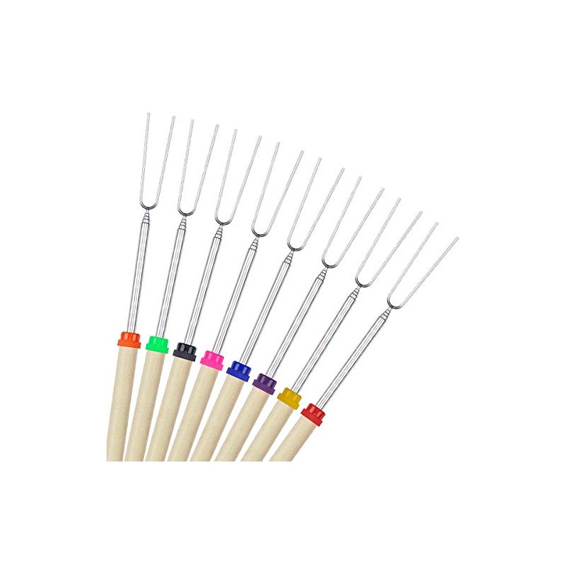COVVY BBQ Marshmallow Roasting Stick Set of 8 Telescoping Extendable Rotating Smores Skewers & Hot Dog Fork 32-Inch Kids Camping Campfire Fire Pit Accessories, 8-Piece (Not bamboo skewers)