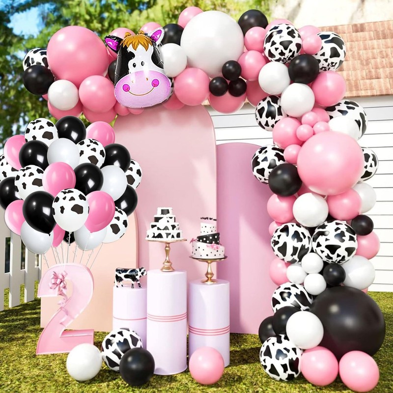 - Pink Cowprint Balloon Set:You will get 10 pcs pink balloons,10 pcs black balloons,10 pcs white balloon and 10 pcs cowprint balloons,a balloon ribbon