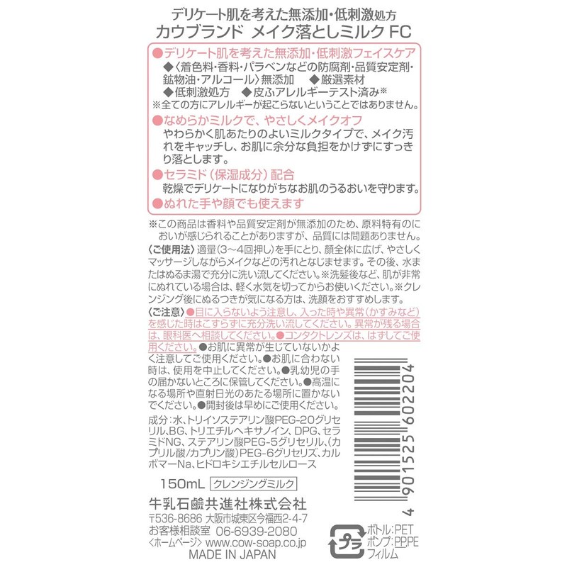 Cow Brand Additive-free Makeup Remover Milk with Pump, 5.1 fl oz (150 ml)