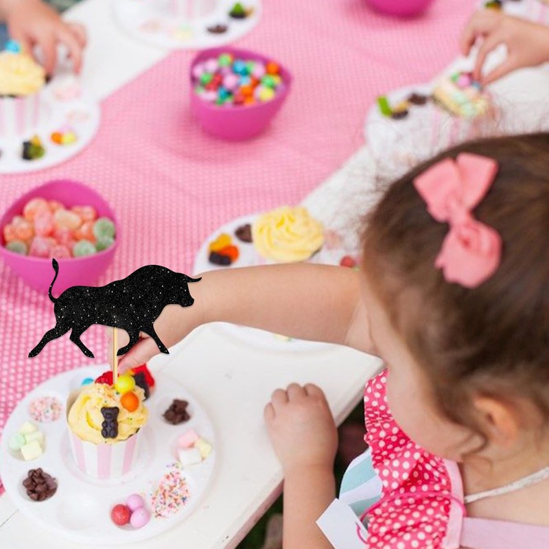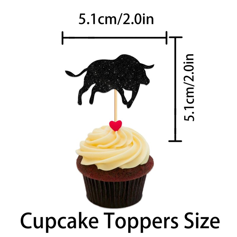 Cow Cupcake Topper Cheer to Western Bullfight Theme Party Favors Decorations Men Women Kids Happy Birthday Party Decor Supplies set 18pcs Black Silhouette Glitter