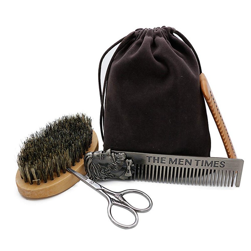 CoWalkers Juego de cepillo y peine para barba, kit de cuidado de barba 4 en 1, cepillo de cerda de jabalí natural + peine de madera de doble acción + peine de acero inoxidable + mini tijeras con bolsa de viaje, ideal para peluquería de barba y bigote