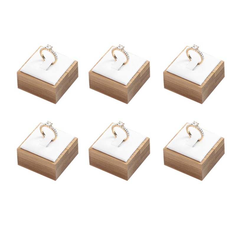 Coward Bamboo 6 Pcs Rings Display Stand, Ring Jewelry Holder Organizer Drawer Storage (White PU)