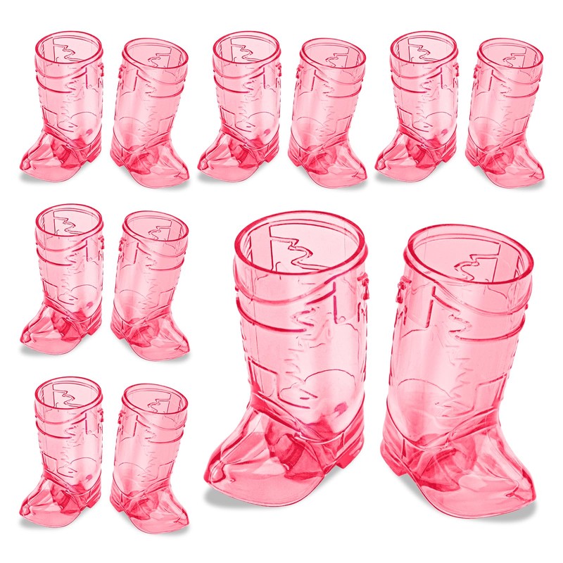 SAIAOKJ Cowboy Boot Shot Glasses, 12 Pcs 1 Oz Mini Plastic Boot Shot Glass, Reusable Plastic Boot Cups for Cowboy Cowgirl Western Theme Party Supplies Bachelorette Birthday Party Favors (Rose Red)
