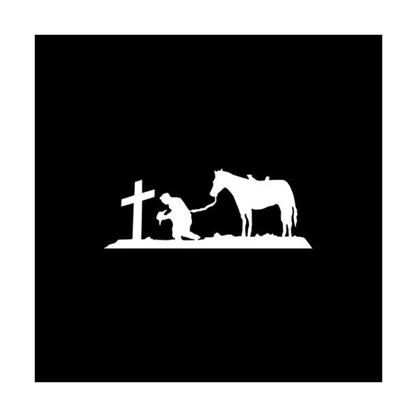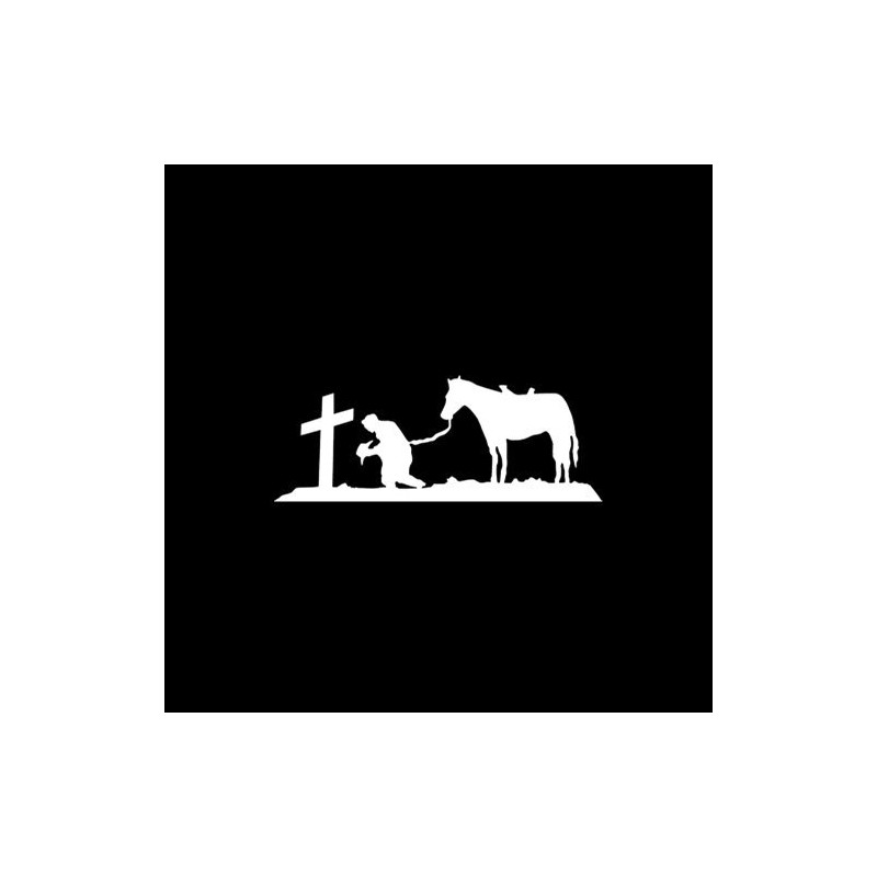Cowboy Praying at Cross Vinyl Window Decal Sticker