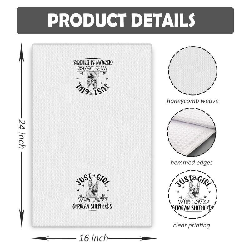 COWEB German Shepherd Gifts Kitchen Towels, German Shepherd Gifts for Women, German Shepherd Decor Dish Towels Tea Towels for Kitchen, Just a Girl Who Loves German Shepherd, 16x24 Inches