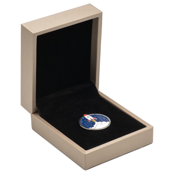 COWFEX Small Single PU Pin Display Box Case for Gift Badges Collectible and Medals (Gold)