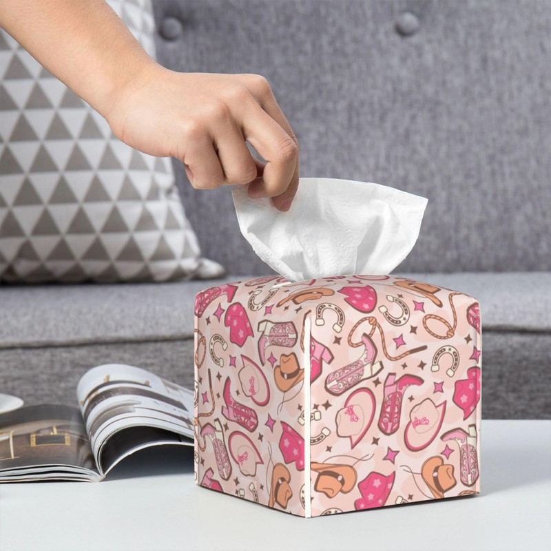 Cowgirl Hat and Boots Square Leather Tissue Box Cover 5.2"X5.2"X5.2" Decorative for Bedroom Office Drawing Room Desk