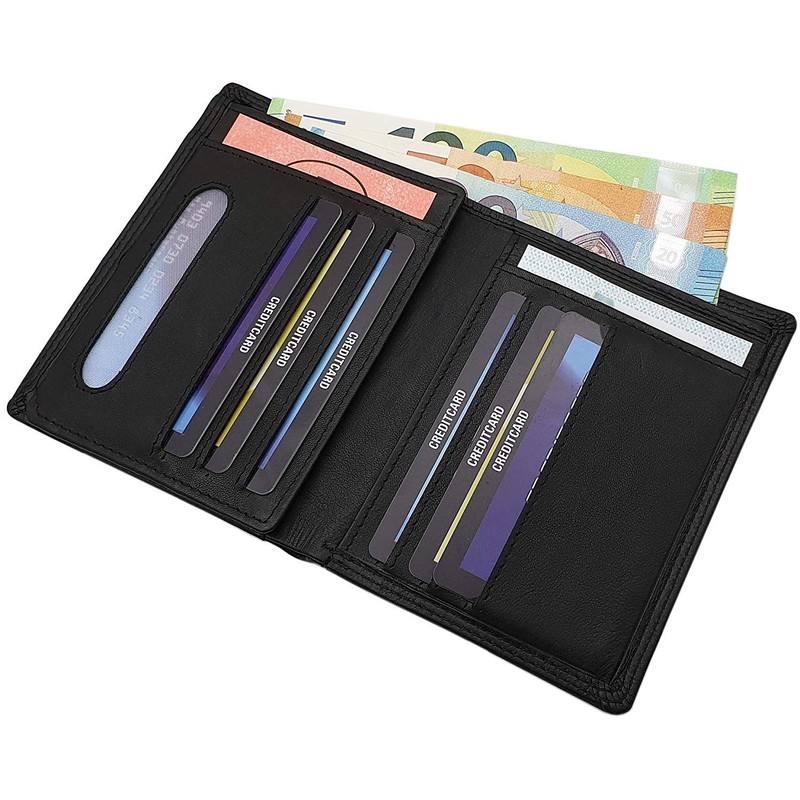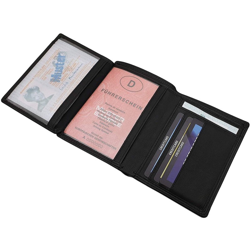 Cowhide Nappa Leather ID Card Holder with Note Compartment MJ-Desing-Germany in Black, black, Standard size, Classic